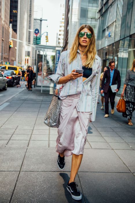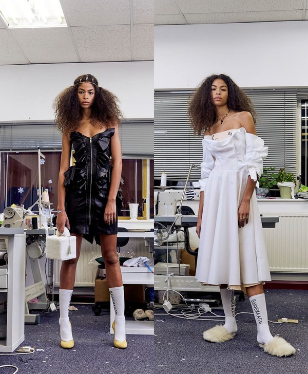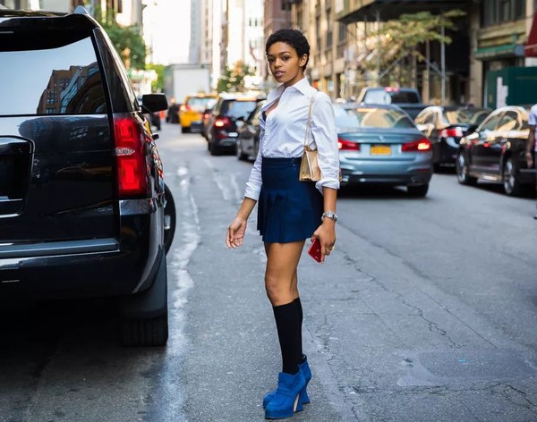 这运动袜可不是设计感裙子的绝缘体,搭配起来可是有模有样的。照这个运动袜热度的趋势下去,传统黑丝袜可以下班休息一下了。