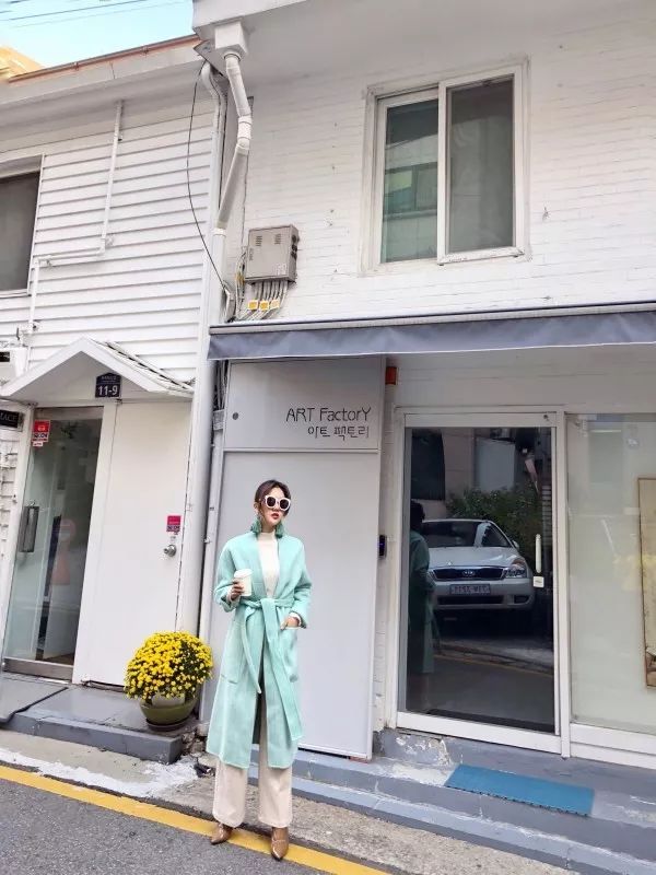 上榜理由:「棕色风衣秋意浓,丝绒半裙添雅意」