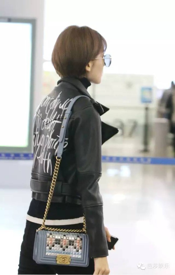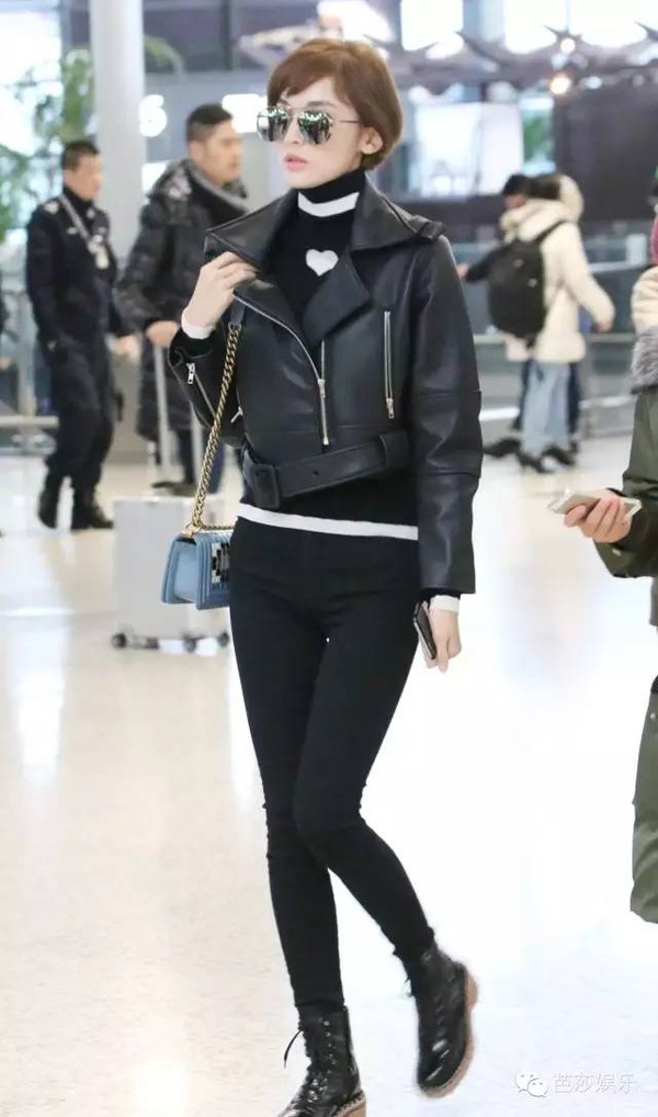 昨天,古力娜扎一身黑色搭配现身机场,头发越剪越短的她穿起皮衣长裤竟然帅得像个假小子