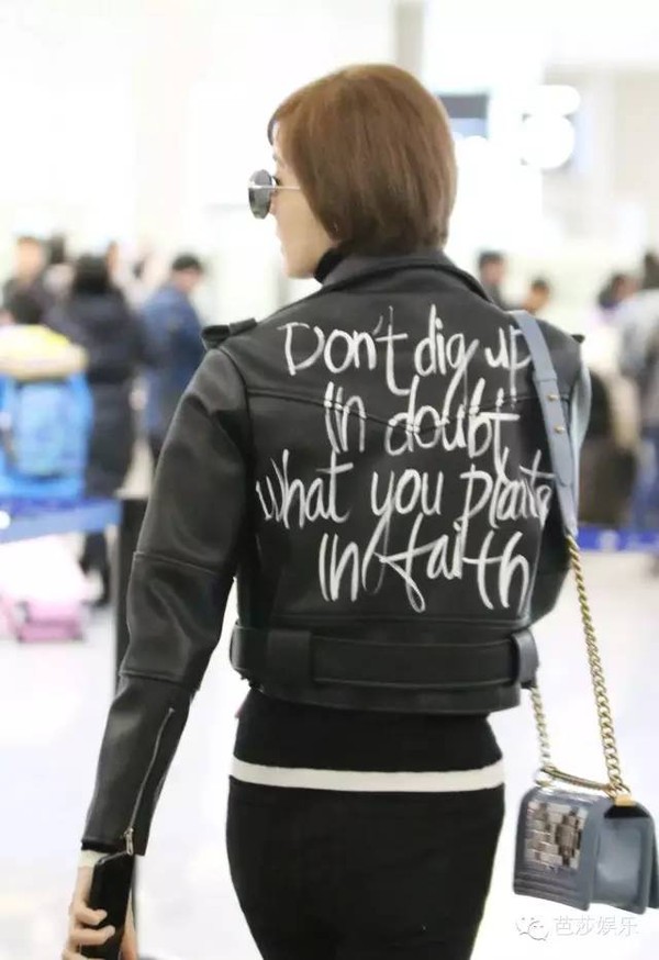 发型跟穿衣越来越帅气不说,仔细看娜扎皮衣背后的英文涂鸦字母图案也超有个性,芭姐原来一直觉得娜扎是个小公举,没想到她穿起潮范儿十足的涂鸦夹克也是毫无违和感