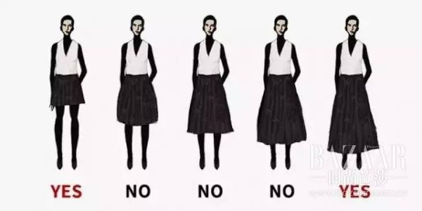小个子穿裙子尤其要注重裙子的长度。卡在膝盖只露出小腿的部分会让整个人显得更加矮小臃肿。所以芭姐建议筷子腿的菇凉们选择尽可能短的mini裙,一秒变瘦变高喔▼