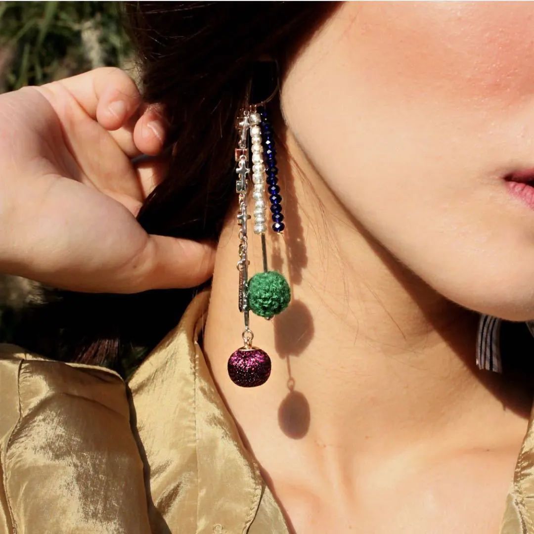 还有一个和Justine Clenquet有着异曲同工之妙的是来自澳大利亚的小众品牌Underground Sundae,同样是以金属风配饰为主打,但是在制作耳饰的过程中扩大了其他材质的占比,显得更为有趣。