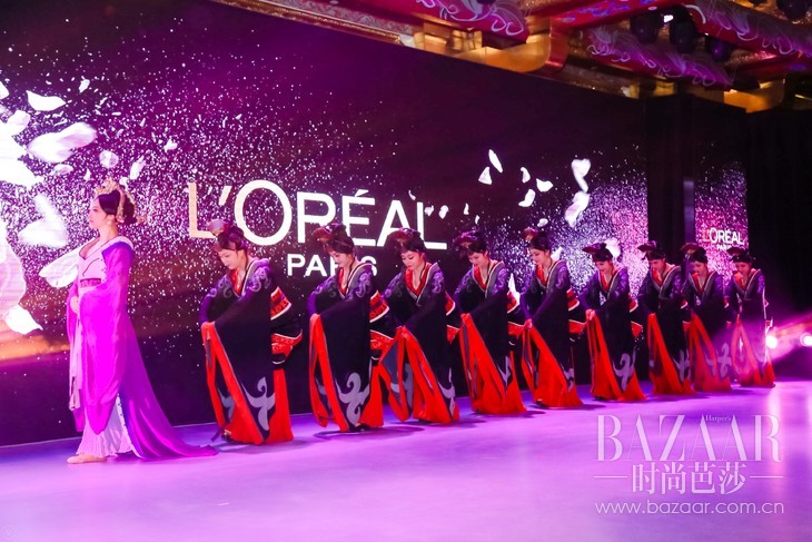 当晚,在巴黎欧莱雅护肤彩妆代言人宋佳与知名国风高定设计师郭培的共同演绎下,一场融合古典与当代艺术的法式至奢视觉盛宴盛大启幕。由洛阳国家歌舞团原班人马带来的舞蹈表演,飘逸的现代舞姿与灵动的粉妍裙摆间散发着高贵与奢华,尽显东方文化底蕴。此次,郭培以欧莱雅金致臻颜牡丹粉妍系列为灵感,特别定制了一款融合中法元素的华服,并特别邀请演员张榕容亲身演绎,尽显法秀工艺与牡丹之美。华美之服与肌肤之悦一脉相承,在宋佳的证言与众嘉宾的瞩目下,欧莱雅金致臻颜牡丹粉妍系列隆重上市,宋佳也在现场分享她无惧时光的驻龄奥秘,与大家一同探秘金致愉悦的护肤体验。
