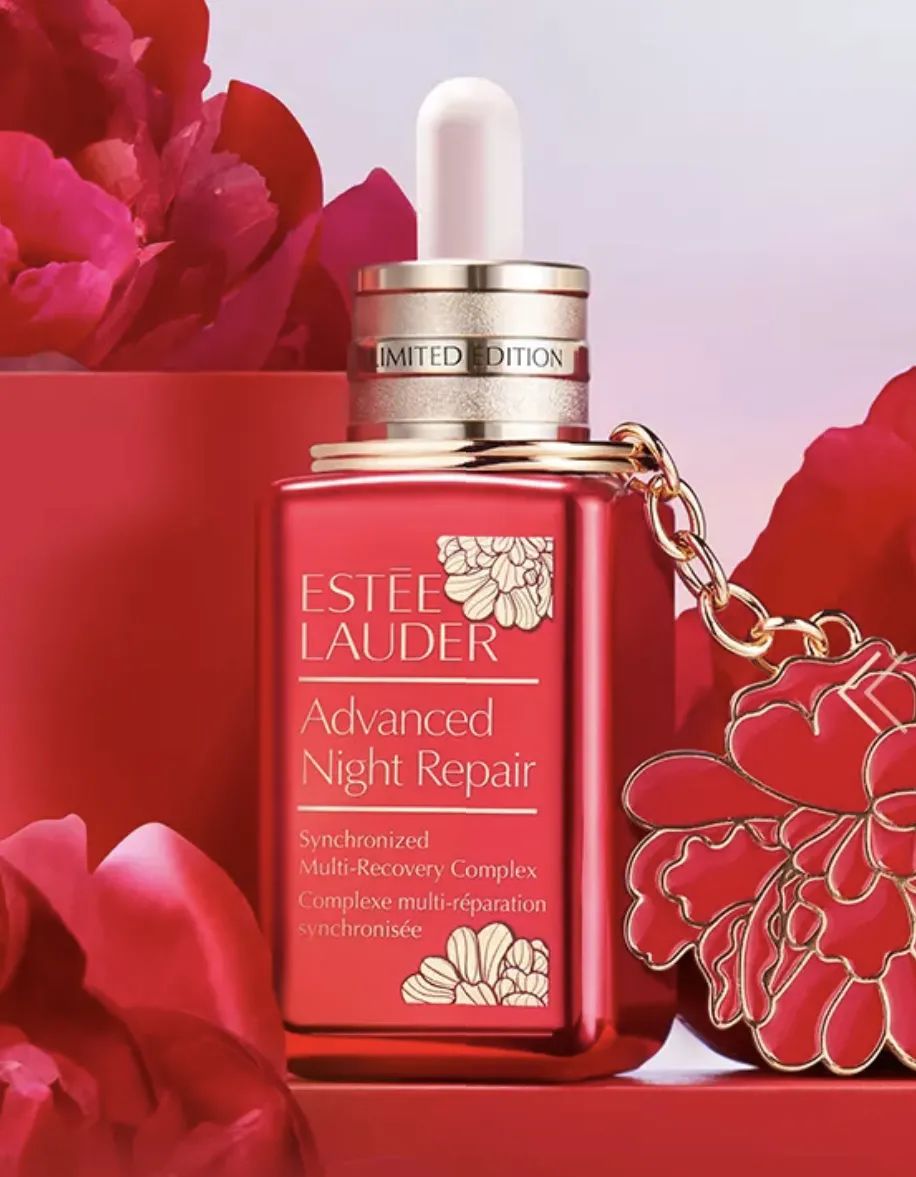 这次雅诗兰黛鸿运花开限定系列包括了特润修护肌活精华露、绝色倾慕眼部彩妆盘和绝色倾慕唇膏系列。