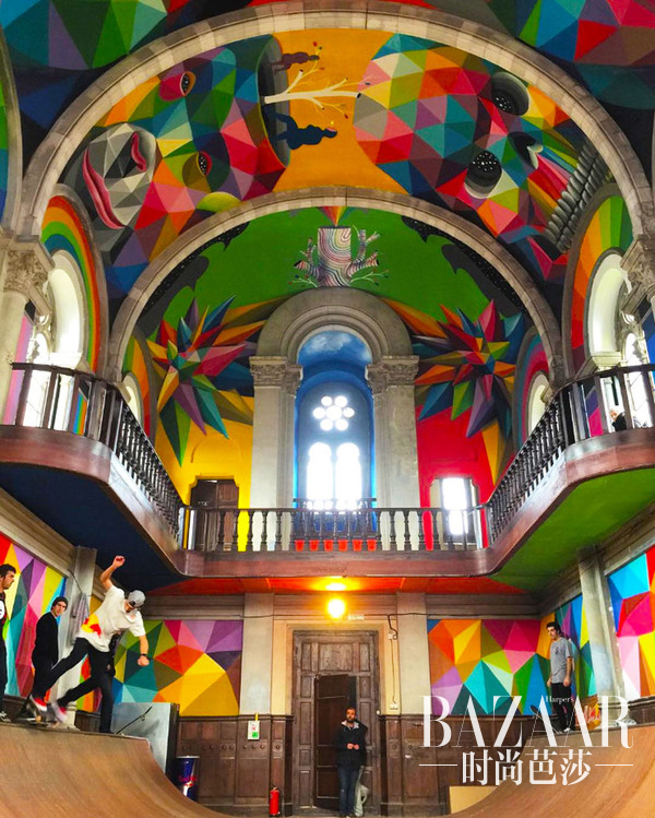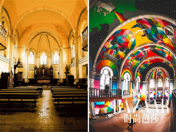【时尚芭莎网讯】刘晶 今年年初,西班牙利亚内拉的一座古老的教堂得到应允被改造成一个滑板公园,并取名为Kaos Temple。目前改造已经进行到第二阶段。艺术家巧用明亮的色彩和等距图形让这座老教堂重新焕发了生机…… 改造前VS改造后...