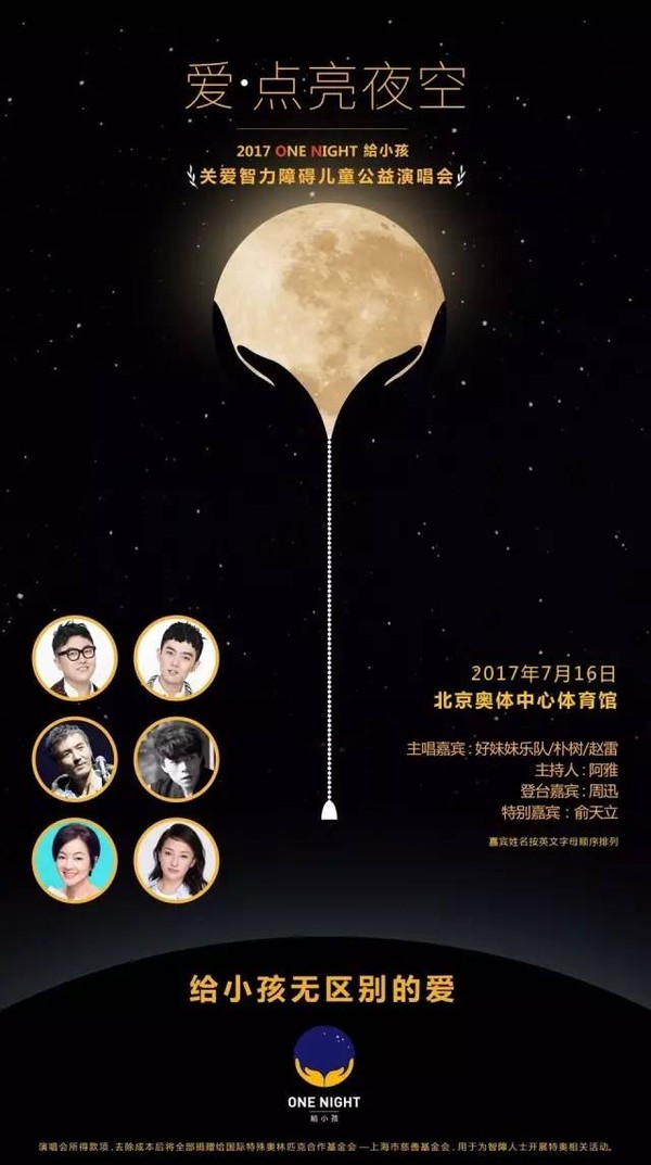 这是周公子“One Night给小孩”公益项目发起的第四年,今年的主题是“关爱智力障碍儿童——给小孩无区别的爱”