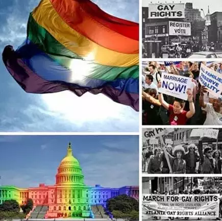 “美国最高法院裁定同性婚姻在全美合法。即根据美国宪法,全美50个州都不得禁止同性婚姻。”