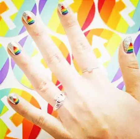美甲控必须是要晒彩虹甲的!与银色戒指相呼应,在彩虹甲之中又加上了银色元素,美美哒!