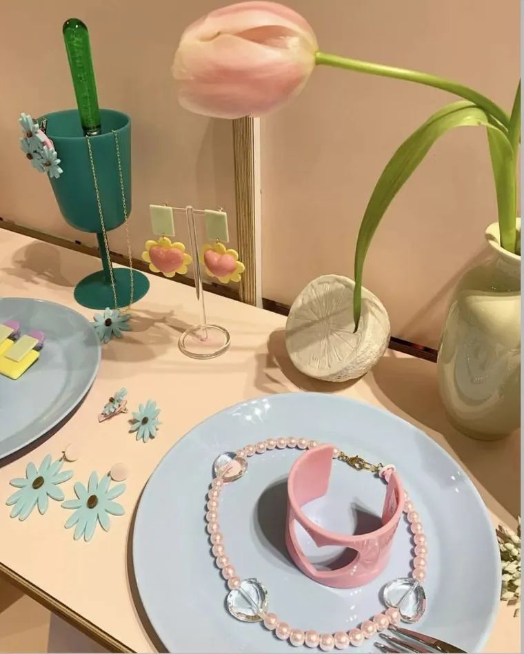 它家的饰品多为马卡龙色,一年四季都不会过于浓烈,尤其适合搭配夏天的衣服。