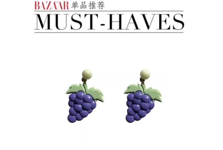 亚克力的材质非常轻盈,戴一整天都不会有负担。葡萄清爽的绿色和紫色超级适合夏天呀!