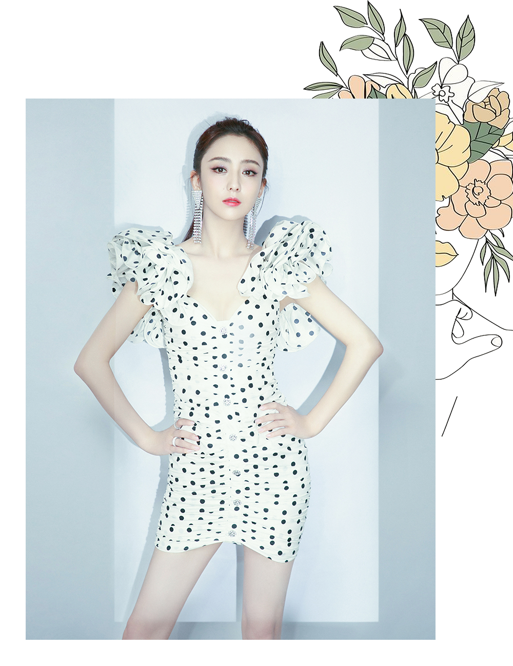 平时简洁利索的佟丽娅,在新一期的《舞者》中用一件波点裙转变了大家印象中的御姐形象,60年代的Polka到了丫丫身上,满是复古杂志封面的味道。