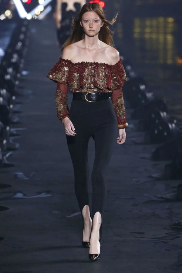 90年代的标志性单品——踩脚裤也在今年重回时尚圈,这点从Saint Laurent 春夏系列秀场上就能看出端倪,在Saint Laurent春季的秀场上,尖头高跟鞋和复古踩脚裤的搭配可谓是赚足了关注度。