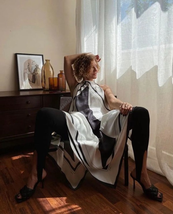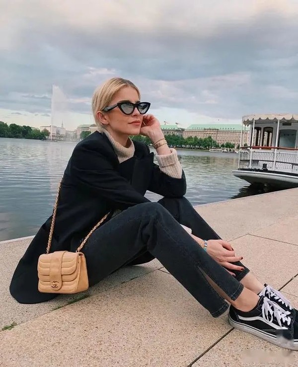 时尚博主Marie Von Behrens更偏爱侧开衩紧身裤,搭配白色打底叠穿圆领oversize套头衫,不多费力气就可以打造这股休闲时髦。
