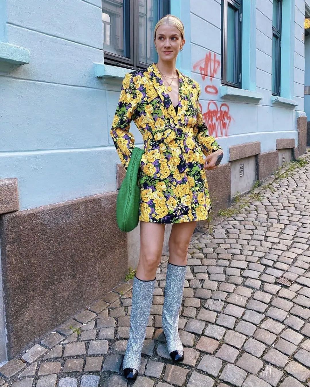 或者是学习博主Marianne的穿法,用印花长靴搭配,表现同样可圈可点。