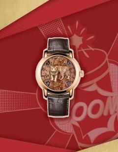 江诗丹顿为钟表收藏家及高级制表爱好者特别呈献 Métiers d’Art 艺术大师系列The Legend of the Chinese Zodiac 中国十二生肖传奇中的最新杰作——虎年腕表。虎,象征着无上的权威和力量,所向披靡。在中国传统文化中它被誉为百兽之王,是驱邪降福的瑞兽。2022 年 2 月 1 日为中国春节,届时“金牛昂首高歌去,瑞虎迎春敛福来”。腕表金质表盘上,以手工雕刻技艺雕成的枝叶装饰图案源自中国传统花卉纹样,半嵌入式的设计将深浅不一的浮雕图案精心组合在一起,营造出富有层次感的纵深效果,所雕刻的植物仿若悬浮于表盘之上,丛林美景跃然腕间。