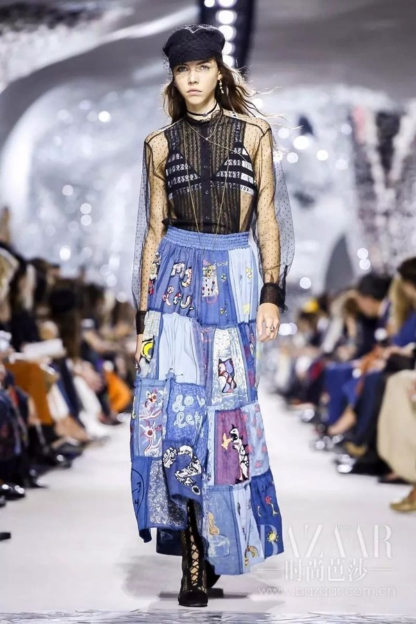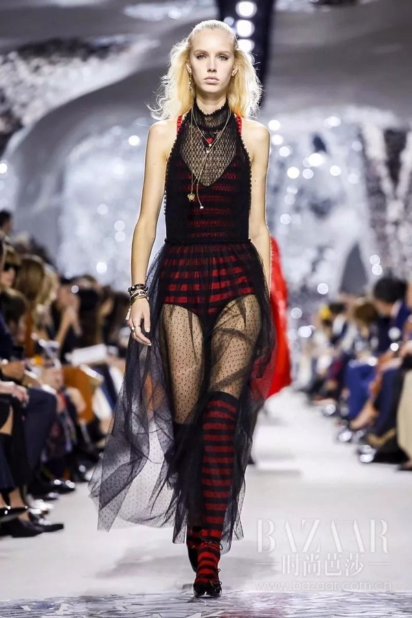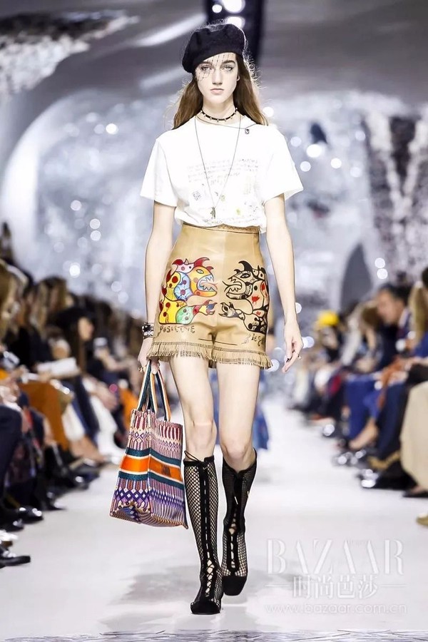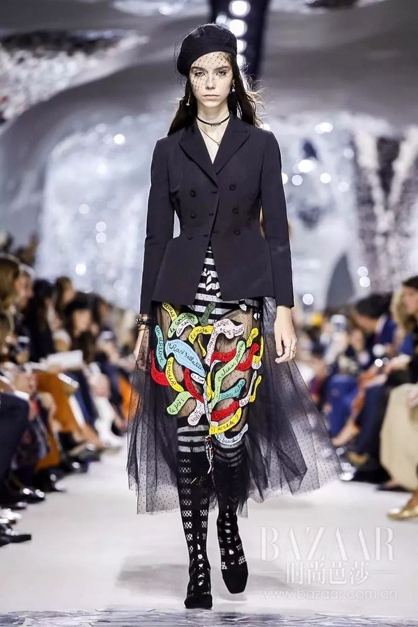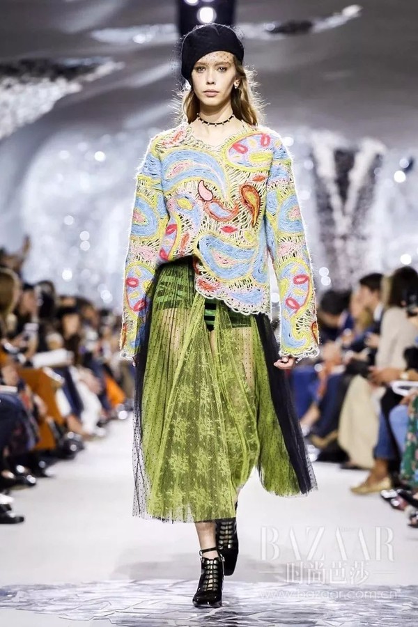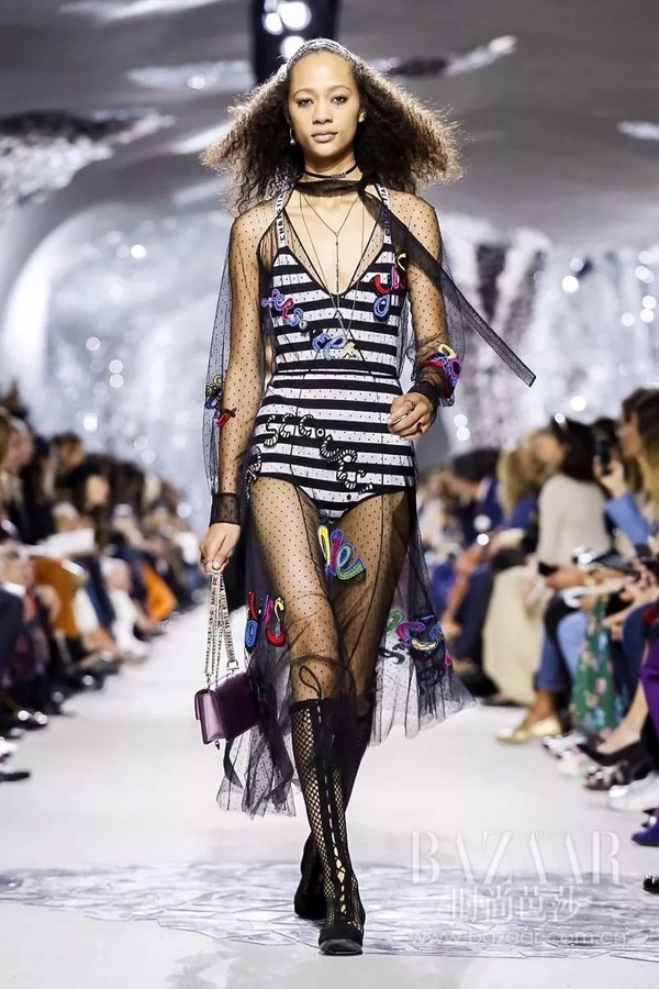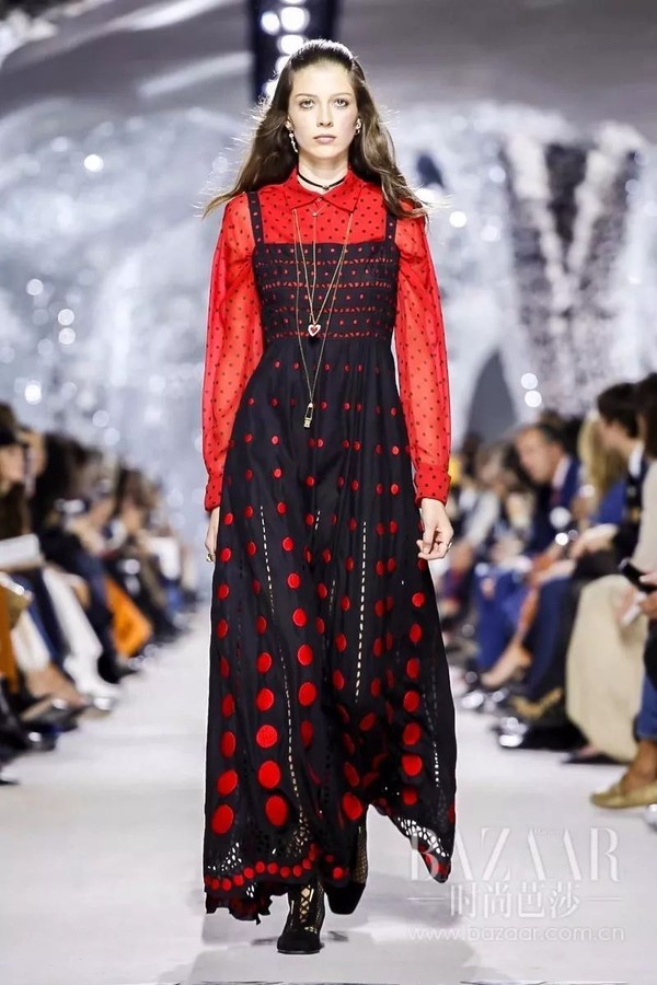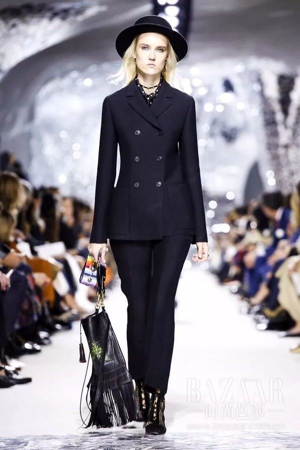 对Dior迪奥女装创意总监玛丽亚·嘉茜娅·蔻丽(Maria Grazia Chiuri)而言本季设计灵感 源于她潜心探索迪奥典藏馆中关于法国艺术家妮基·圣法尔的一系列摄影作品。其中一幅,艺术家坐在骆驼上;而另一幅则是她身着挚友马克·博昂(Marc Bohan)担任迪奥创意总监时所设计的礼服裙。