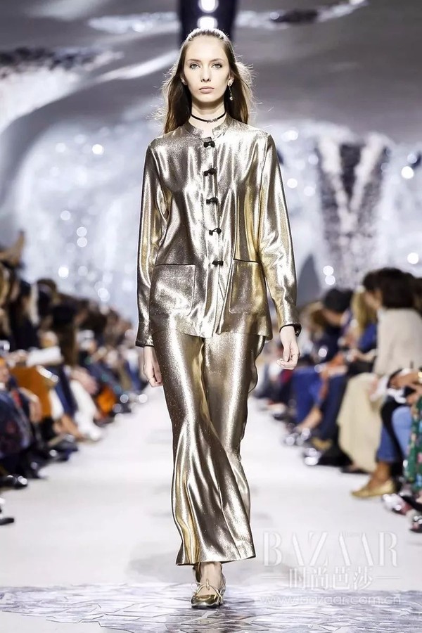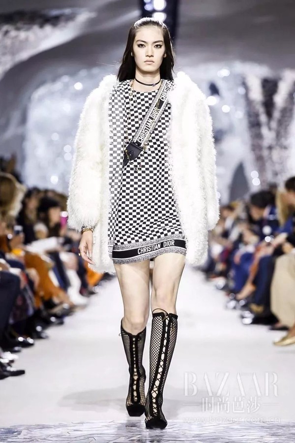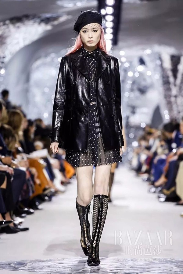 熊乃瑾助阵Dior 2018春夏大秀,蝴蝶结抹胸上衣搭配小西装外套,演绎硬朗与柔美的碰撞。