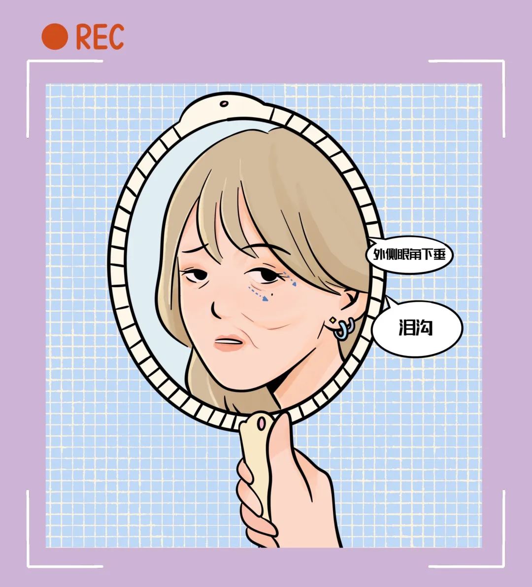 当全层次衰老发生在中面部的时候,我们面部会出现:法令纹、苹果肌下垂、泪沟和外侧眼角下垂。