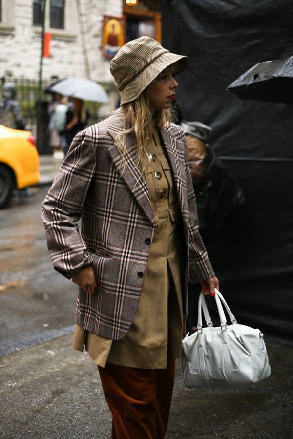 用渔夫帽搭配同色系西装,也是精妙的小心思,做到轻易的时髦。