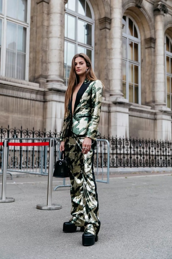 在复古风潮的盛行下,防水台高跟鞋也逐渐出现在各品牌秀场和时装周街拍上。时装精们搭配西装,不仅拉长了下半身线条,而且也给造型带来了别样的韵味。