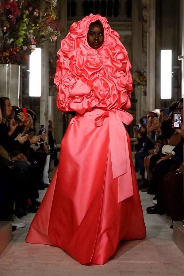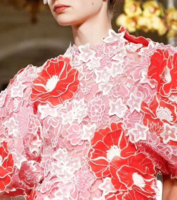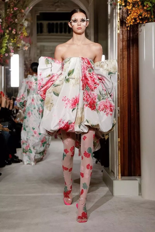 这座只出现在夜幕下的花园里,雾气混合花香让我们感觉自己正深陷其中,周身的一切似乎在来回旋转,盛开的花朵看不到尽头。Valentino创意总监Pierpaolo Piccioli把在这里寻找的一切:花瓣、花冠、光线,用尽极致浪漫的手法,重新演绎在高定时装中。