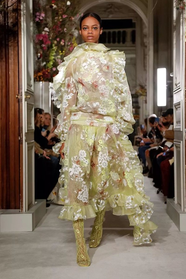 夜幕降临,伴随背景音乐The First Time Ever I Saw Your Face,Valentino2019年春夏高定系列在Hôtel Salomon de Rothshild华丽古典的宴会厅内揭开神秘的面纱。从摆放在四处的花枝点缀中,我们似乎能猜到这是一季与花朵有关、充满秘境仙气的系列。