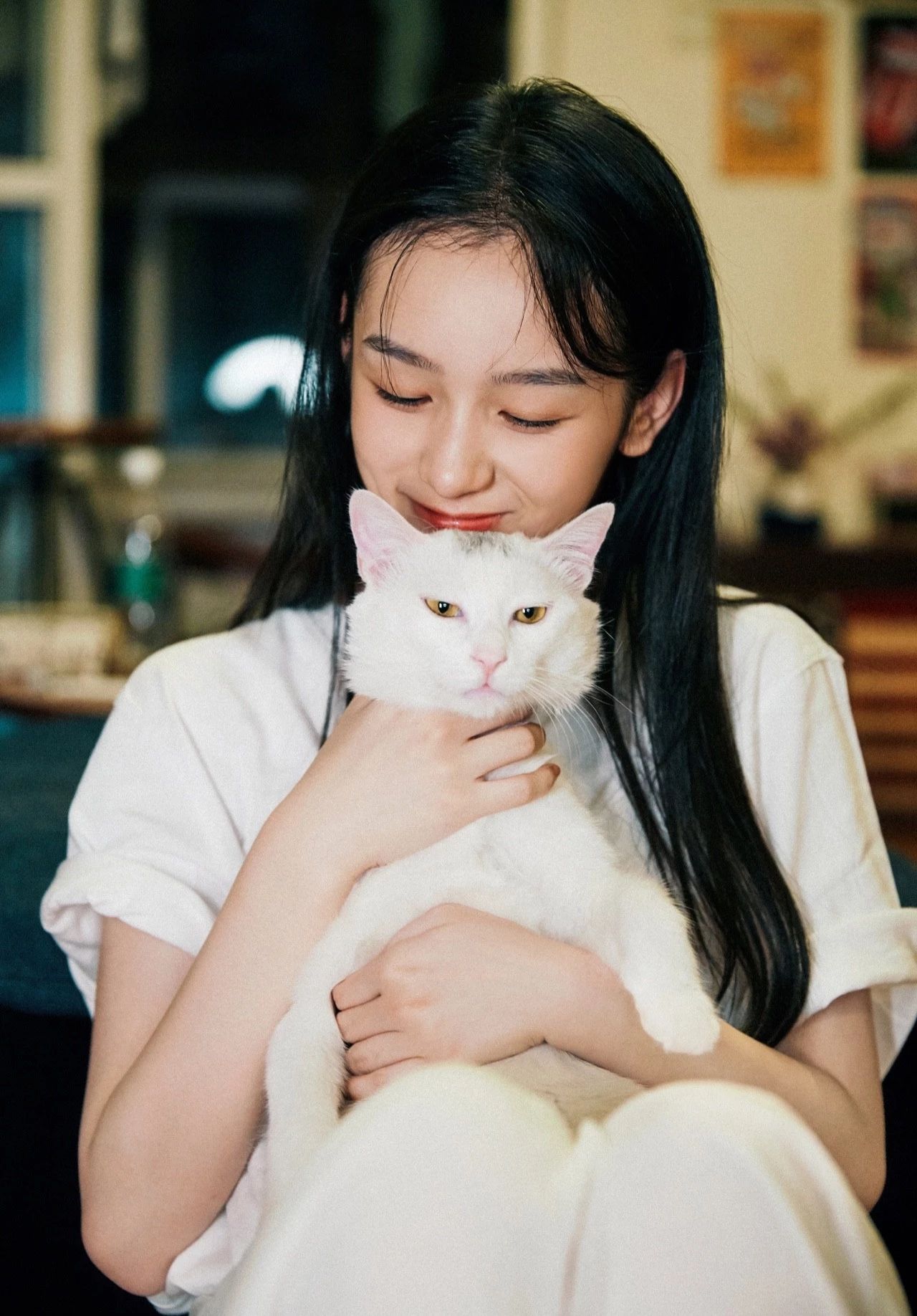 生活中的周也是一个十足的文艺少女,喜欢小动物、喜欢笑、喜欢一切美好的事物……真希望时间定格在周也抱着猫低眉浅笑的惬意时光。