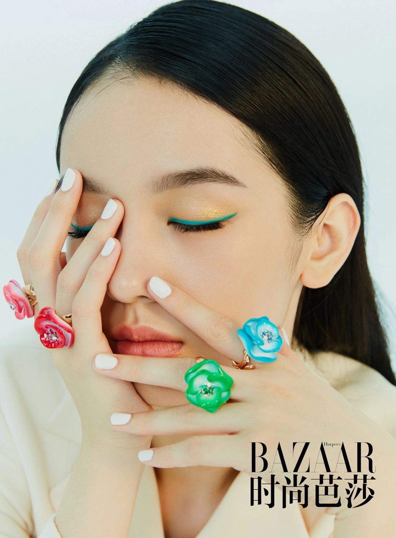 蓝绿色的眼线如同丝巾一般随风飘扬,周也享受拍摄的过程,闭眼缱绻,少女思考也未有片刻停息,完美驾驭一手DIOR高级珠宝。