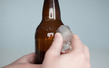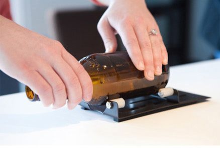 然后是用火加热瓶子,最后用冰领冷却,借助热胀冷缩使玻璃沿着第二步骤的裂口裂开,一个酒瓶花器就做好了!