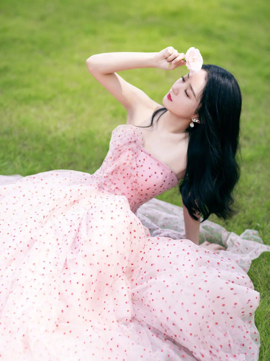 而baby这位仙女姐姐也麻烦把下凡费交一下吧,Dior七夕限定粉色吊带纱裙营造出的如梦如幻氛围,让baby再一次展现了清爽又明媚的气质。