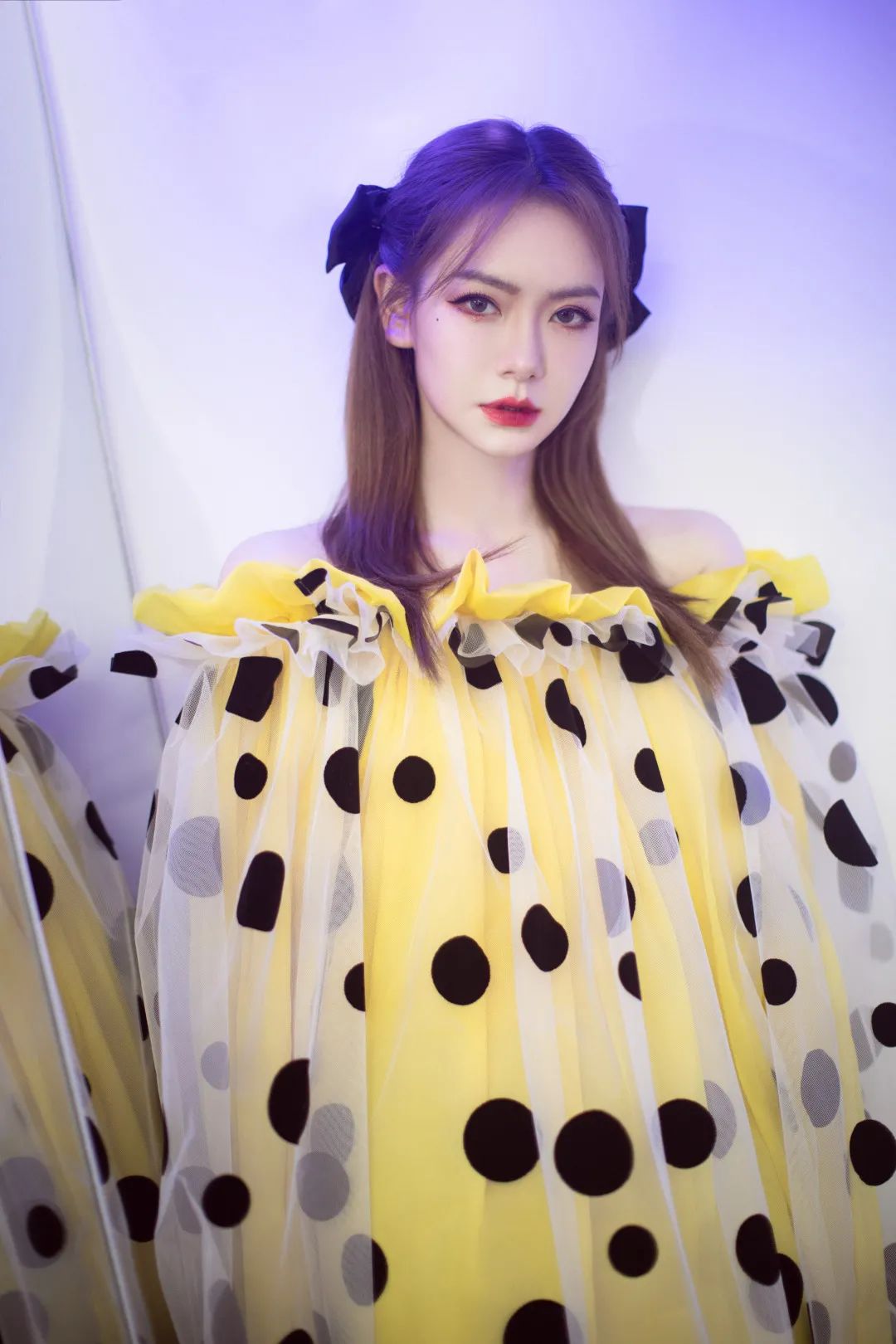 不对称的连衣裙结合了彩色的波点、泡泡袖和荷叶边等元素,除了带有少女感,还更多了分仙气。
