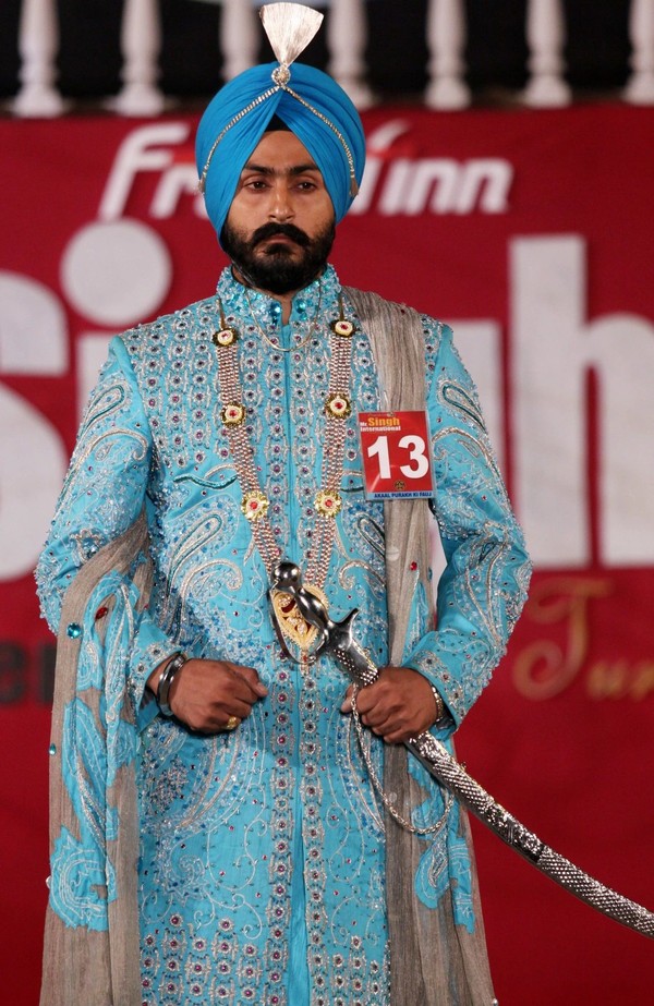 Gucci 2018年秋冬系列,模特头戴的蓝色头巾挪用了印度锡克教的传统装扮