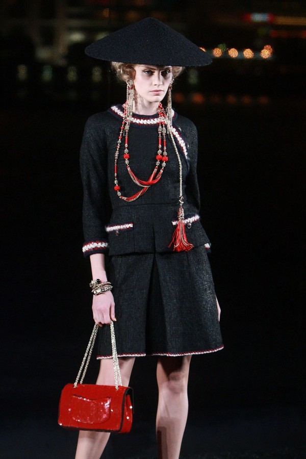 Chanel“巴黎·上海”2010高级手工坊系列,引用了军人服饰特征和少数民族装饰风格,但帽子等配饰更接近越南等东南亚地区的服饰文化