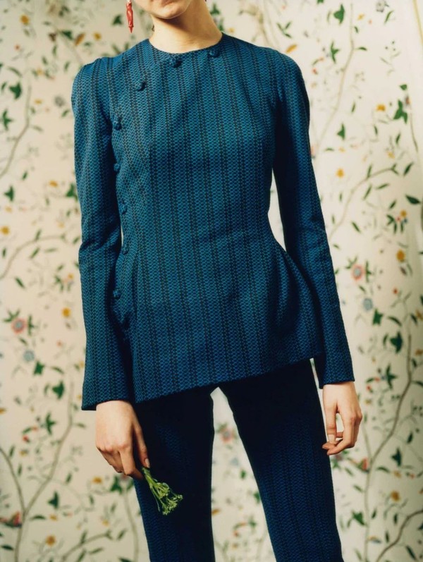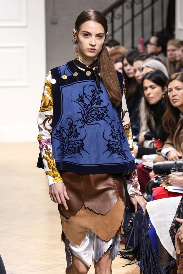 JW Anderson 2017秋冬系列中设计师将自己淘来的中国清朝一字襟坎肩和现代时装随意搭配
