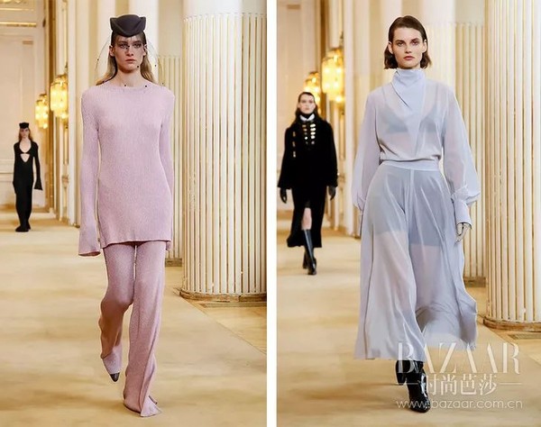 除了运动套装外,还有很多不同的选择,像 Nina Ricci 2018 秋冬秀场上的针织套装、薄纱套装,有着高级的舒适优雅,尤其适合身材窈窕、性格慢热的女生。