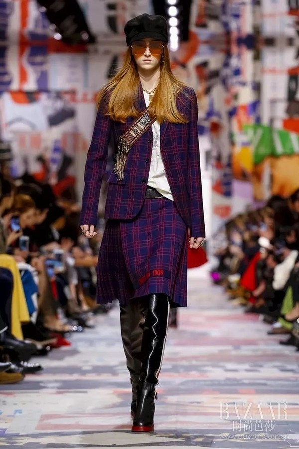 在今年秋冬,格纹中活泼有跃动感的彩色格纹尤为受到欢迎,Dior 就展现了一身彩色格纹西装裙套装,有着年轻感的优雅。