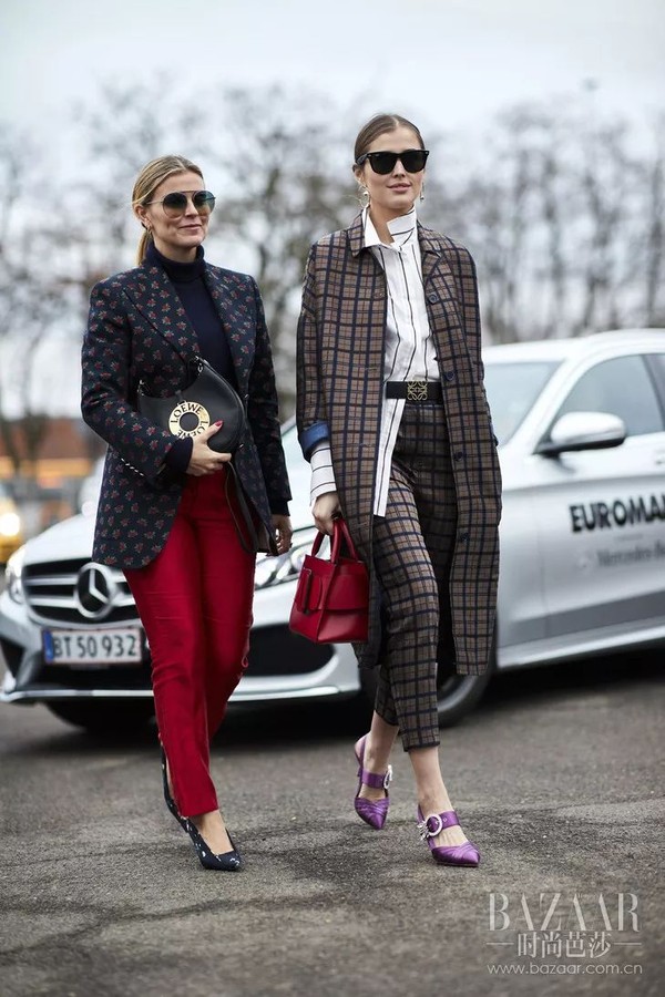 彩色格纹的衬衫与长裤,同样是今年秋冬流行的搭配,随性的休闲时髦。