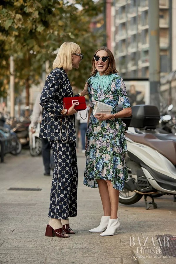 穿上整齐排列的印花套装,哪怕是“睡衣”款式,精致时髦度也一分不减。