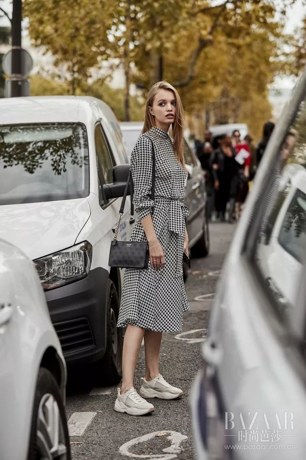除了格纹以外,还有一个图案也相当经典时髦——千鸟格。千鸟格套装比起格纹套装,更富复古优雅气息,是文艺少女不可错过的时髦选项。