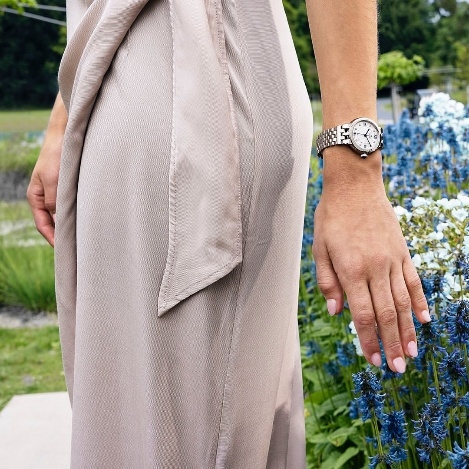 超薄大师系列Master Ultra Thin,具有极致轻薄的设计。其中,这表盘如春日湖面般纯净,搭配精致的指针与刻度,展现出低调而不失格调的优雅气质,为春日造型增添一抹轻盈与精致。