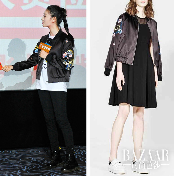 13日林允宣传电影《美人鱼》。刺绣夹克有趣又时髦,搭配黑色长裤和马丁靴,简直帅出一条街!俏皮的马尾清爽又可爱。今年大热的刺绣夹克林允已经先穿上啦,你们还不抓紧跟上脚步!