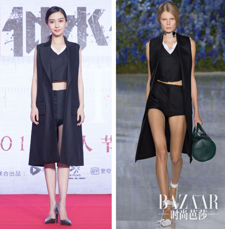 2月14日Angelababy出席电影《谋杀似水年华》发布会。黑色露胃装搭配高腰裤穿出三七分的好比例,长款的西装马甲帅气干练,扎起的头发更显清爽率性。还有那两条逆天的大长腿完全不输超模!