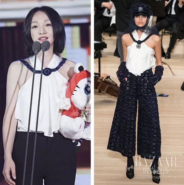 时尚“长青树”周迅也眼光独到地看中了这一“小众潮流”。带钻饰的白色削肩上衣一上身,洒脱的迅哥儿立刻优雅格调满满,肩线更是美到不行!