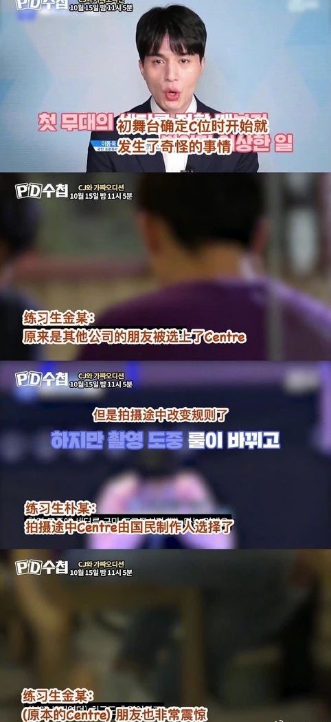 而在前天公开的《PD手册中》,有关人员还爆料,《ProduceX101》不止是票数造假,名次偷换,节目中许多细节都提前内定,比如主题曲《X1-MA》临时换人做C位、StarShip练习生提前知道竞演曲