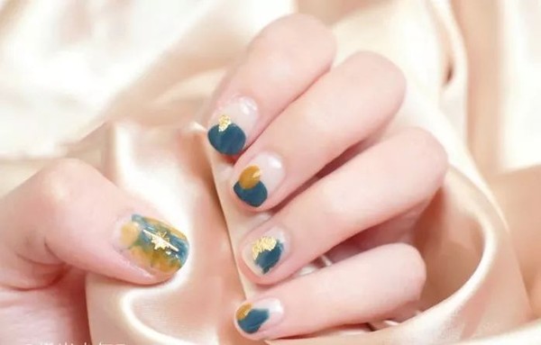 另一种避免显手黑的办法就是选择跳色,把黄色作为点睛之笔,以宝蓝色为基础,随意画几笔,就像是一副颇具艺术感的油画~