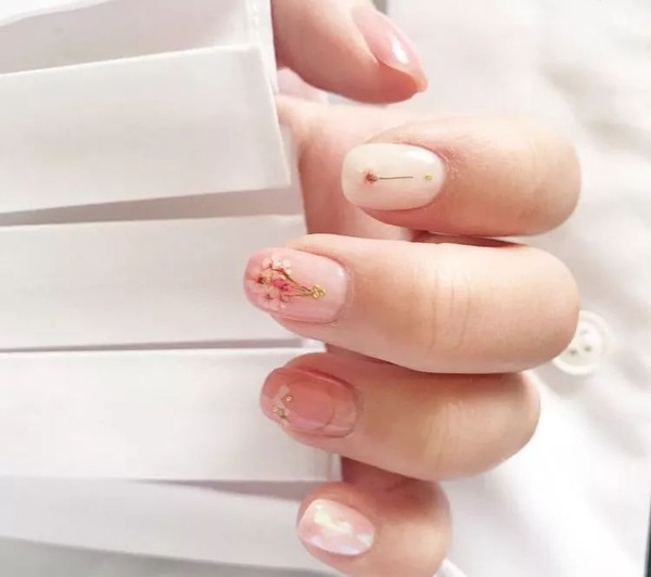 唯美烂漫的干花美甲在日本非常流行,通过压花工艺,让花朵重新绽放在指尖。