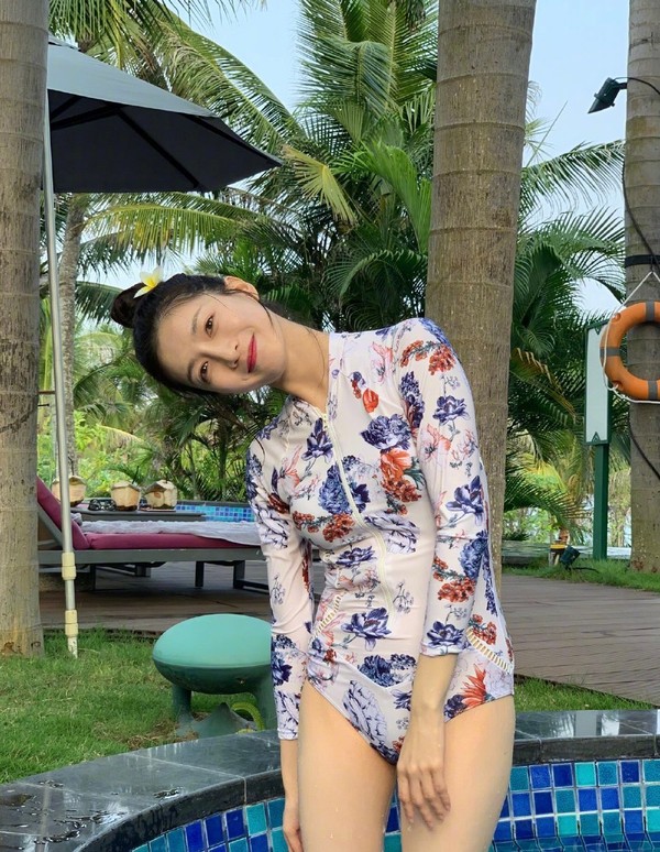 还有江疏影的三亚泳装照,丸子头配花泳装,低调秀身材也能让人心动不已。💓