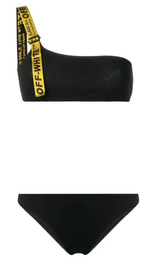 最近登顶Lyst 2019第一季度全球最受欢迎品牌榜单的Off-White,标志性的黄色肩带泳衣也少不了。