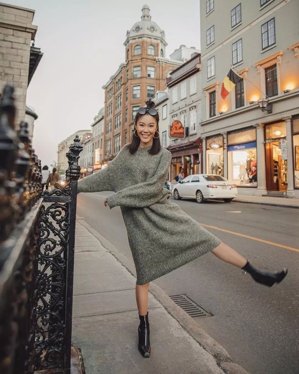 提到毛衣裙搭配,就不得不提起亚裔时尚博主Jenny Tsang,偏爱毛衣裙的她便向我们证明了亚洲女生也能将毛衣裙穿得很时髦。