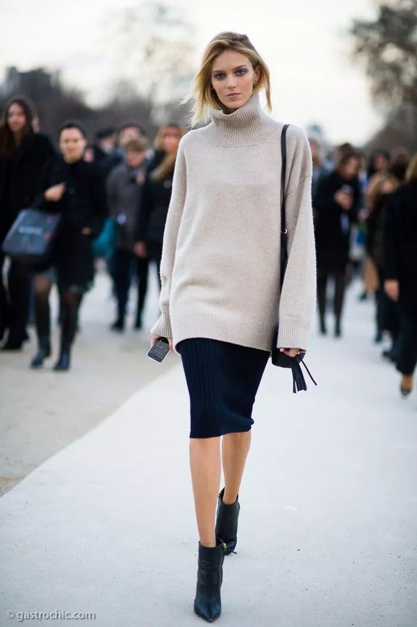 如果你有小肚子也不用担心,修身毛衣裙其实很能帮你“藏肉”,只要搭配一件外套,既可以为你掩盖身材的缺陷又可以起到保暖的效果。